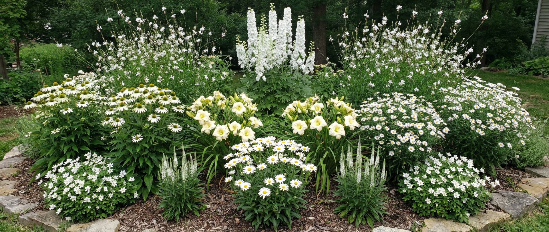 Bílý sen (Bíle kvetoucí záhon bez travin)