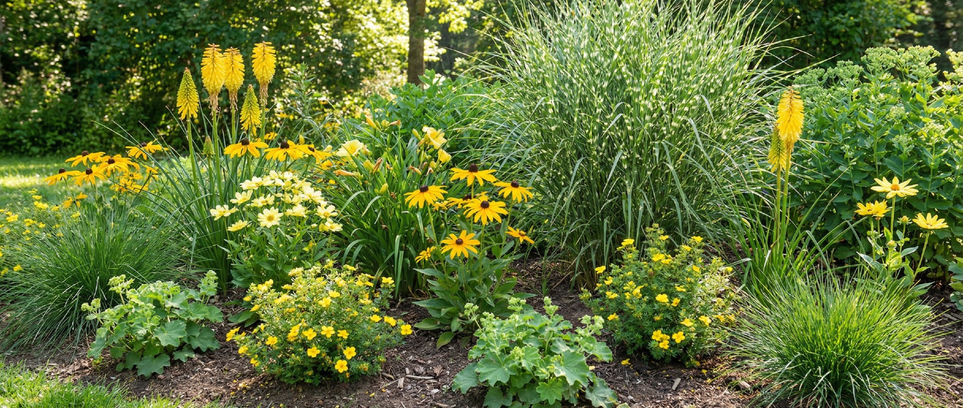 Zlatý poklad (Žlutě kvetoucí záhon s travinami)