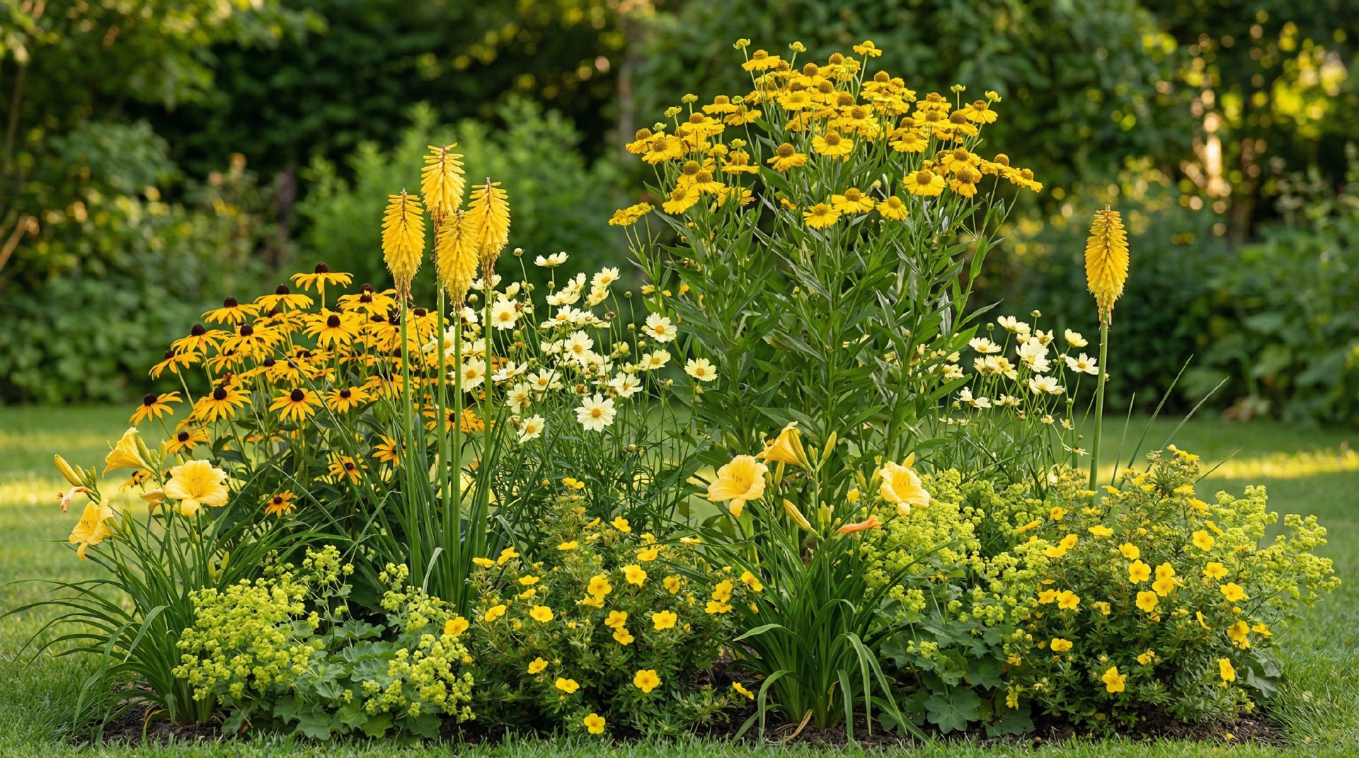 Sluneční paprsek (Žlutě kvetoucí záhon bez travin)